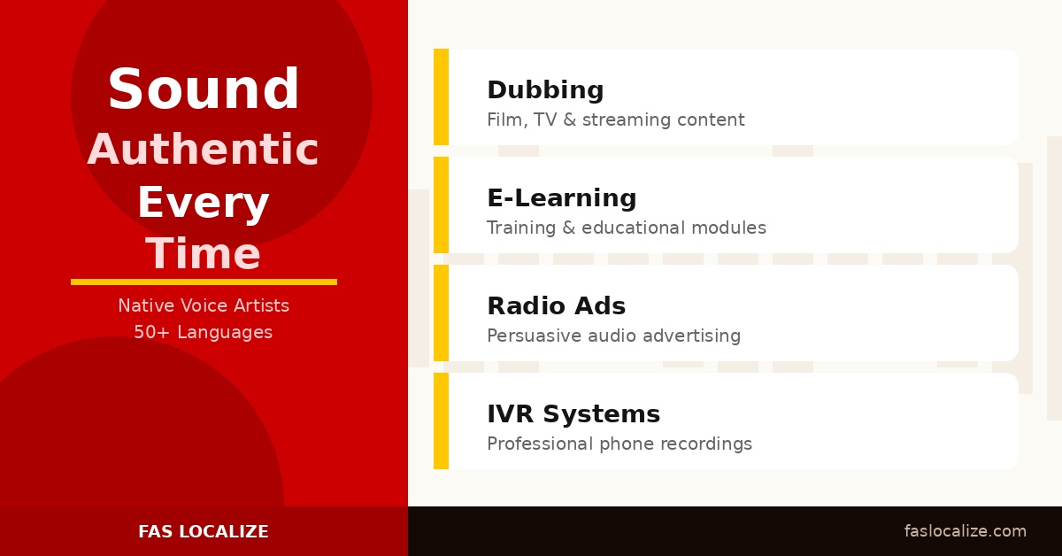 The difference between a native and non-native speaker in voiceover is immediately noticeable to local audiences. Native-speaking voice artists bring: